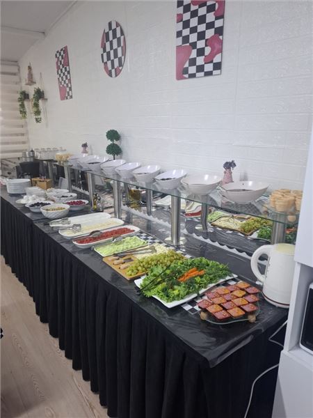 YERSU Kız Öğrenci Yurdu’nda öğrencilerin sağlıklı ve dengeli beslenebilmesi için hijyenik koşullarda hizmet veren ferah bir yemekhane bulunmaktadır. Geniş oturma düzeni, aydınlık ortamı ve düzenli temizlik ile öğrenciler, kahvaltı ve yemeklerini keyifli bir atmosferde yiyebilir.